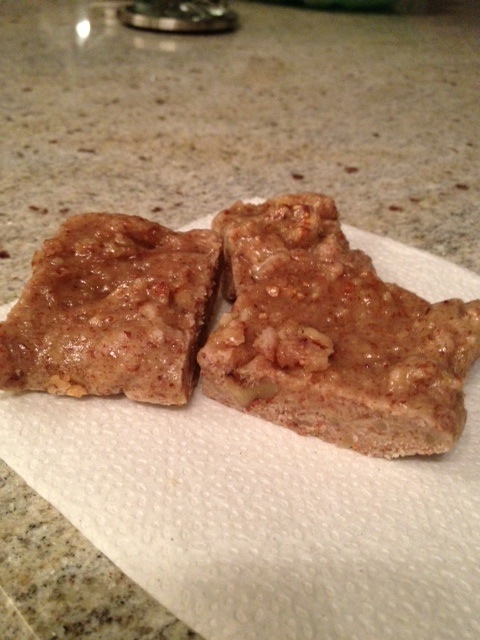 4. Spread the dough into an 8×8 inch baking dish coated with olive oil cooking spray and bake for 15 minutes at 350 degrees F. Let cool, cut into squares and enjoy!