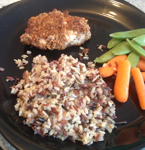3. Ensure that chicken breasts are too thick, if so cut in the middle or pound them. Dip each chicken breast into the egg then into the nut mixture, coating both sides well.